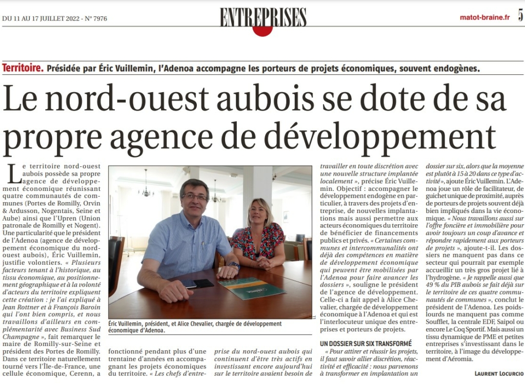 Focus sur les agences de développement éco de la Région dont Marne Développement, Ardennes Développement et ADENOA pour le Nord Ouest Aubois !