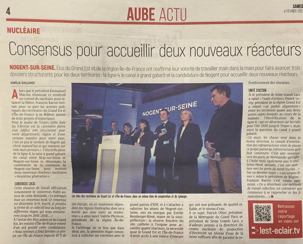 Mobilisation des acteurs du territoire, de la Région Grand Est et celle de l’Ile de France pour porter le projet ambitieux d’accueillir de nouveaux réacteurs EPR de 2e génération.